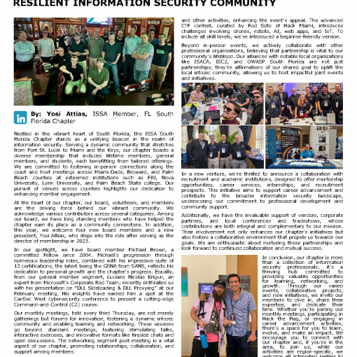 We’re excited to share that our South Florida ISSA chapter has been featured in the ISSA international organization’s journal, highlighting our dedicated efforts in building a resilient information security community. The article appears on page 30 and offers an in-depth look at our dynamic chapter activities and our commitment to enhancing information security in the […]